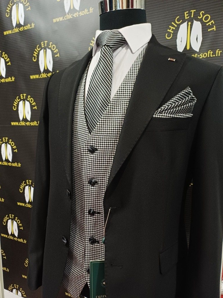 quantitƩ de Costume 3 piƩces noir gilet reversible