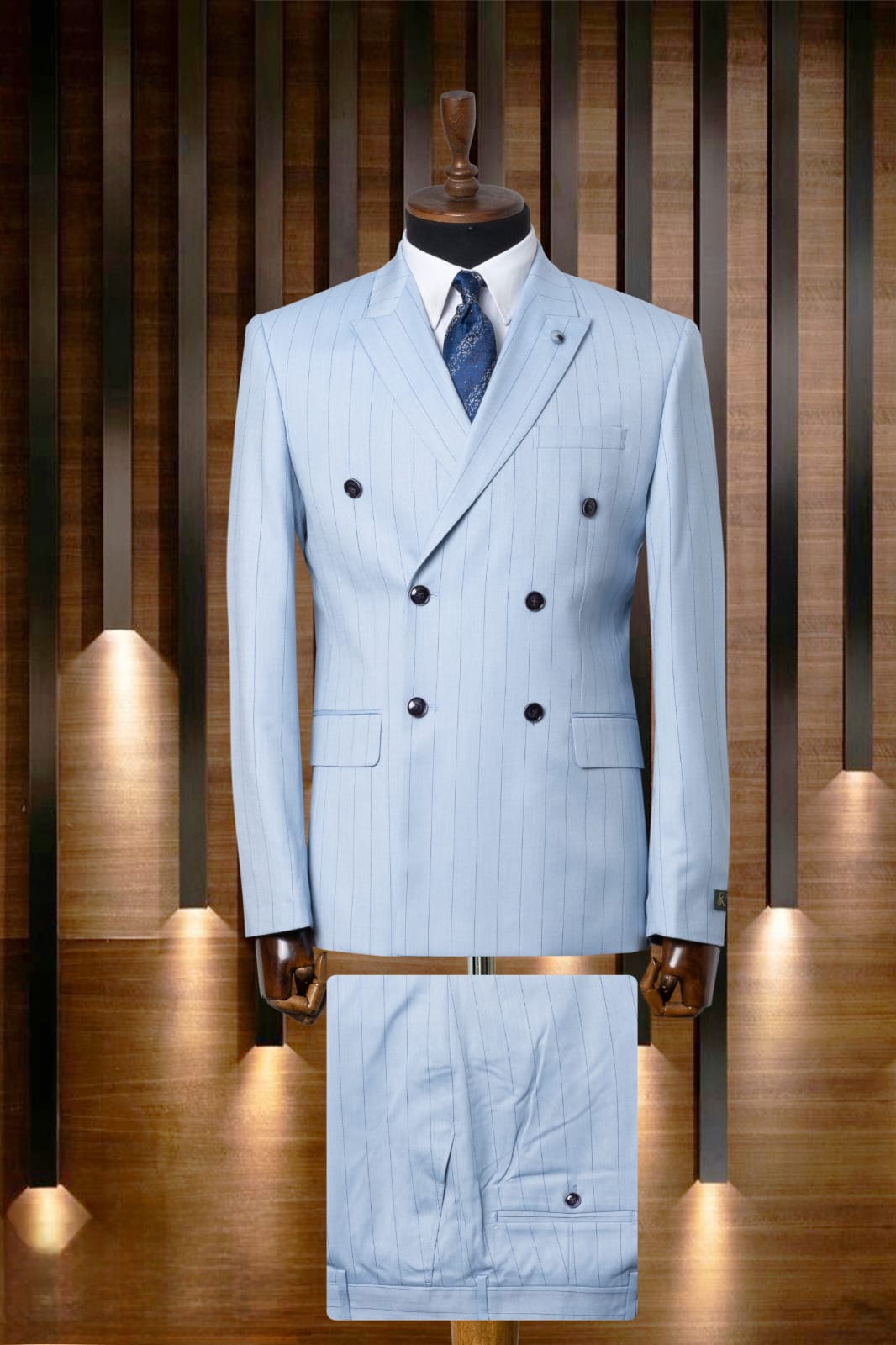Costume croisé bleu ciel rayé borsalino
